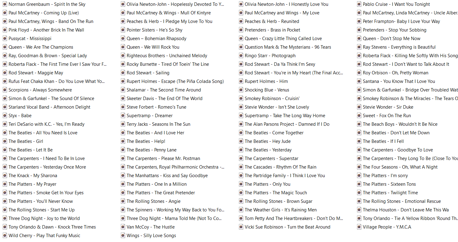 收录1500首经典70-90年代英文歌曲